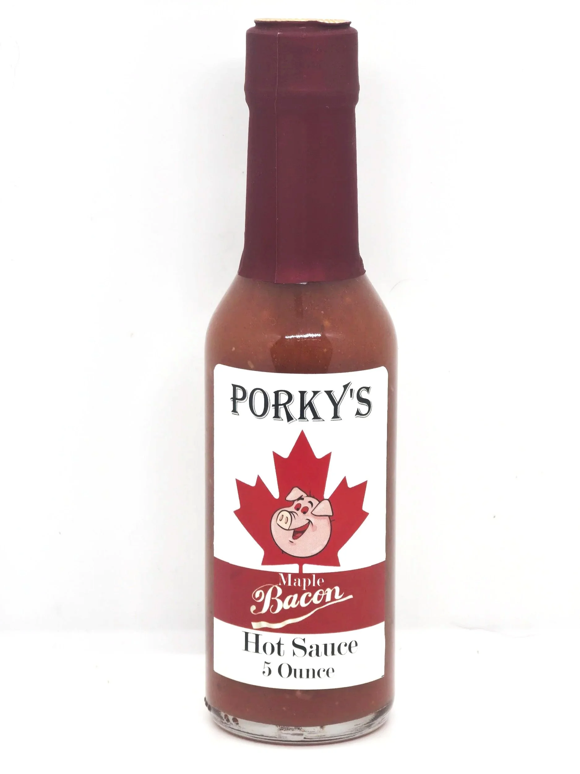 Porky’s Maple Bacon Hot Sauce is made with our own Hot Pepper Blend, Real Bacon and Canadian Maple Syrup.