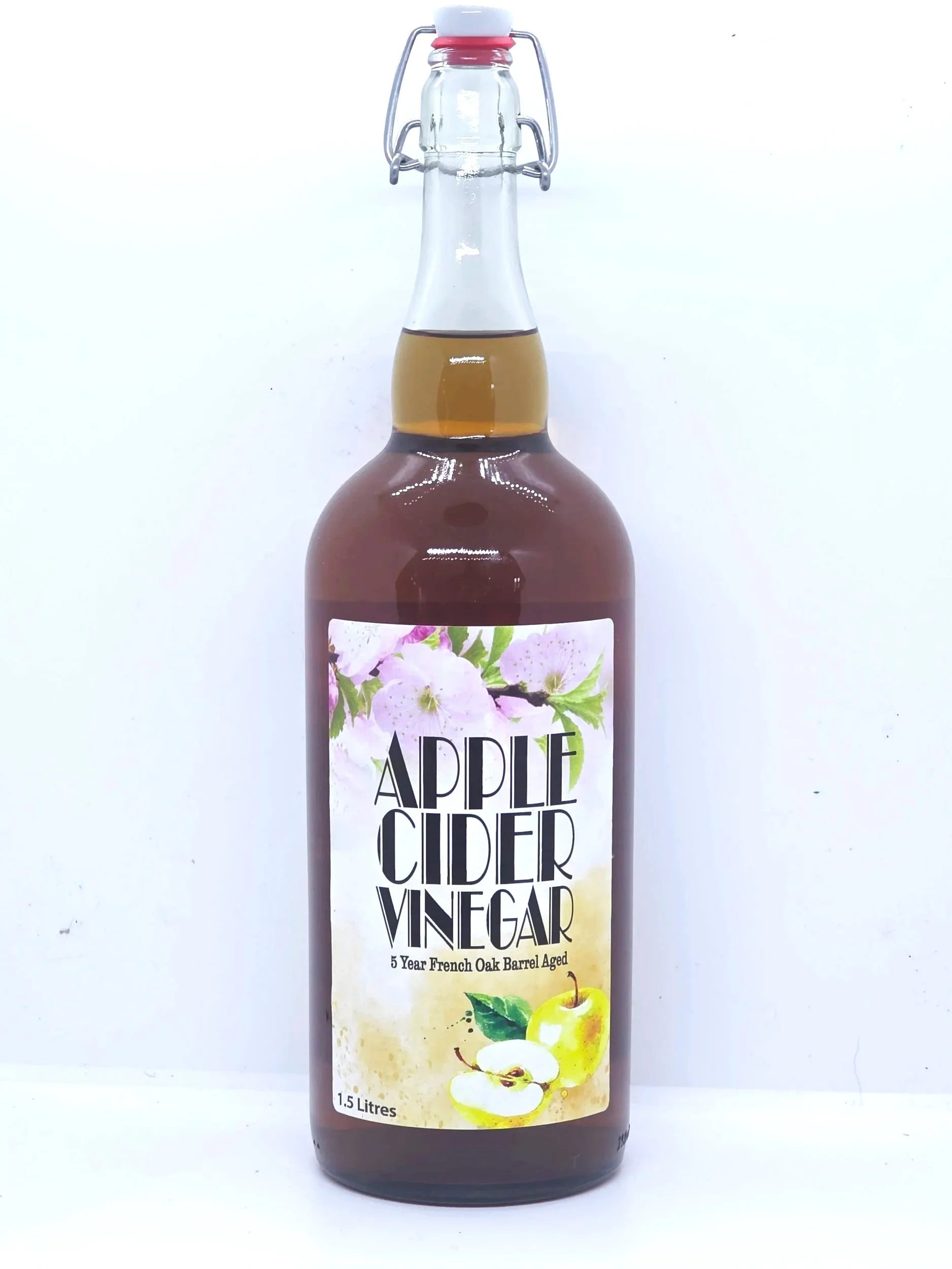 Our Estate Apple Cider Vinegar is made in our Cellar and is aged for 4 years in French Oak Barrels!